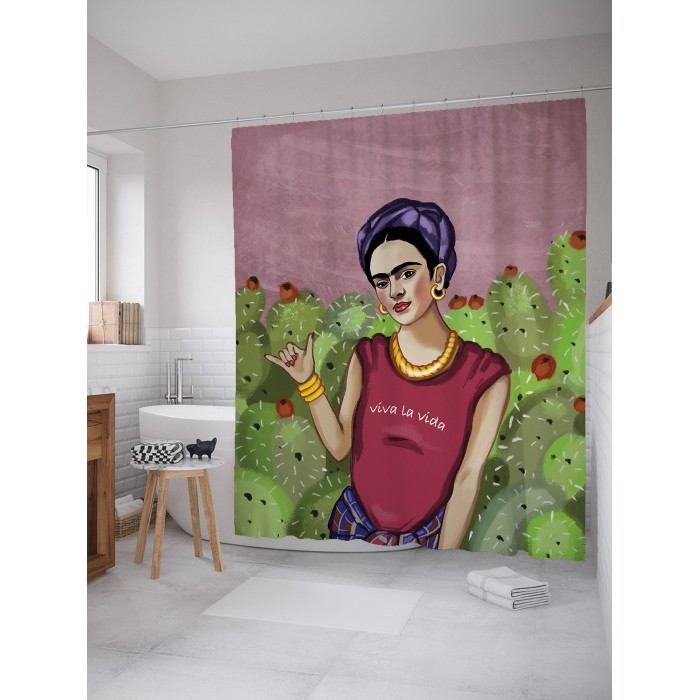 Шторка-занавеска для ванной JOYARTY Штора занавеска из сатена с крючками Тусовая Фрида 200х180 см (размер: 180х200)