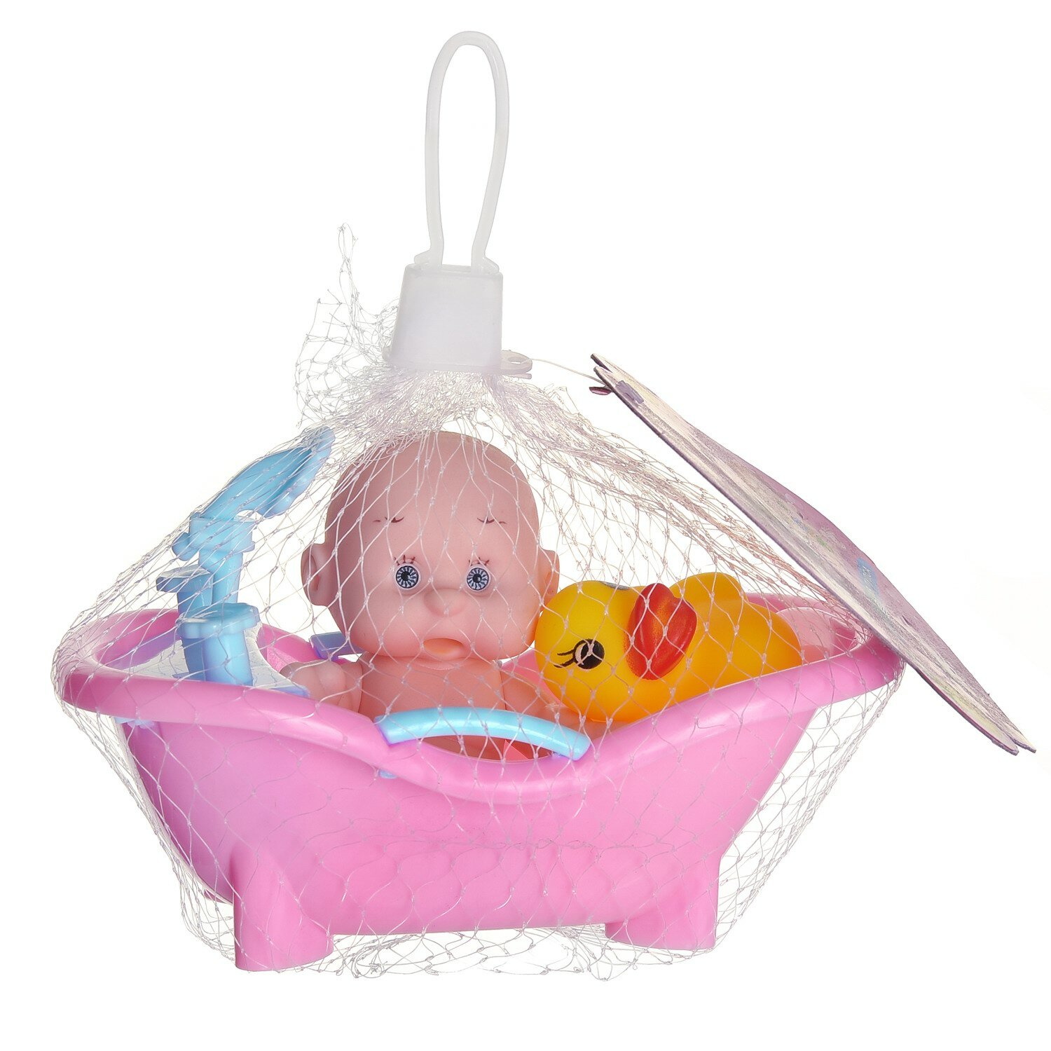 | Комплектация | очаровательный пупсик, ванночка с краном и милый желтый утенок. |