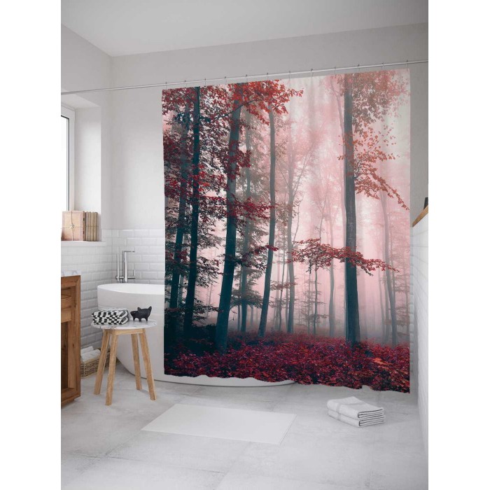 - Модель: Штора-занавеска для ванной из сатена с крючками Загадка леса 200х180 см