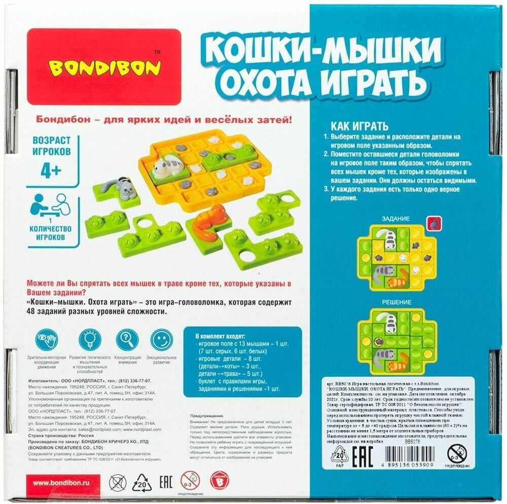 Игра настольная логическая Кошки-мышки. Охота играть Bondibon