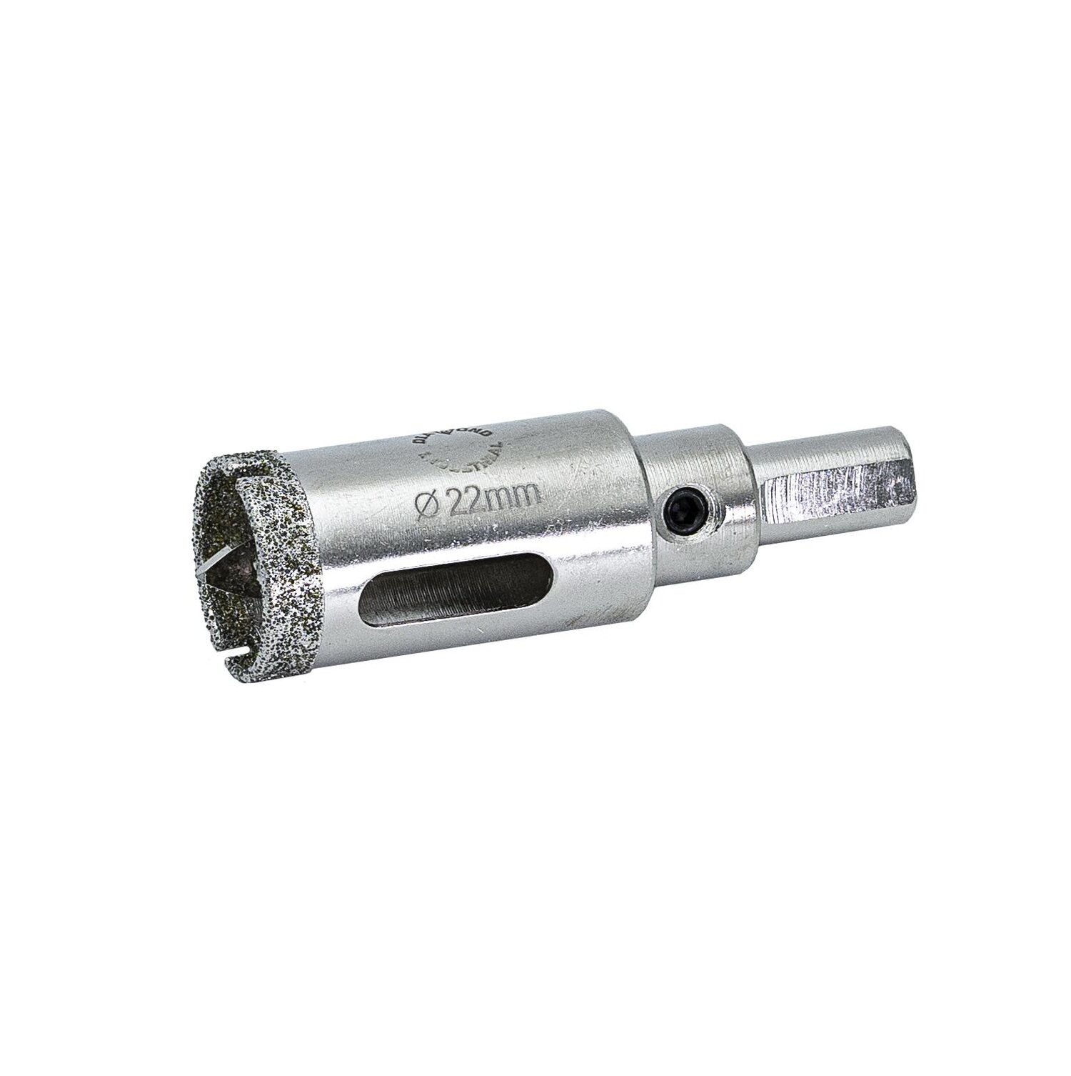 Алмазная коронка Diamond Industrial 22 мм с центровочным сверлом. Используется при сверлении керамогранита, плитки, кафеля. Позволяет вырезать отверстия правильной круглой формы без сколов и трещин. Изготовлена из высококачественной конструкционной стали. Покрытие коронки выполнено гальваническим способом в два слоя, что обеспечивает эффективное сверление и продолжительный рабочий ресурс инструмента. Специальное отверстие в боковой стенке коронки отводит строительную пыль и охлаждает оснастку. Снятие с коронки центрового сверла осуществляется при помощи шестигранного ключа (поставляется в комплекте). Трехгранный хвостовик обеспечивает плавный ход и высокий уровень вращения. При сверлении отверстий с использованием алмазной коронки все работы производятся только с охлаждением: путем подачи в рабочую зону воды. Diamond Industrial предлагает вам коронки по керамограниту, плитке и кафелю различных диаметров: 16 — 120 мм с центровочным сверлом и 6 — 14 мм без.