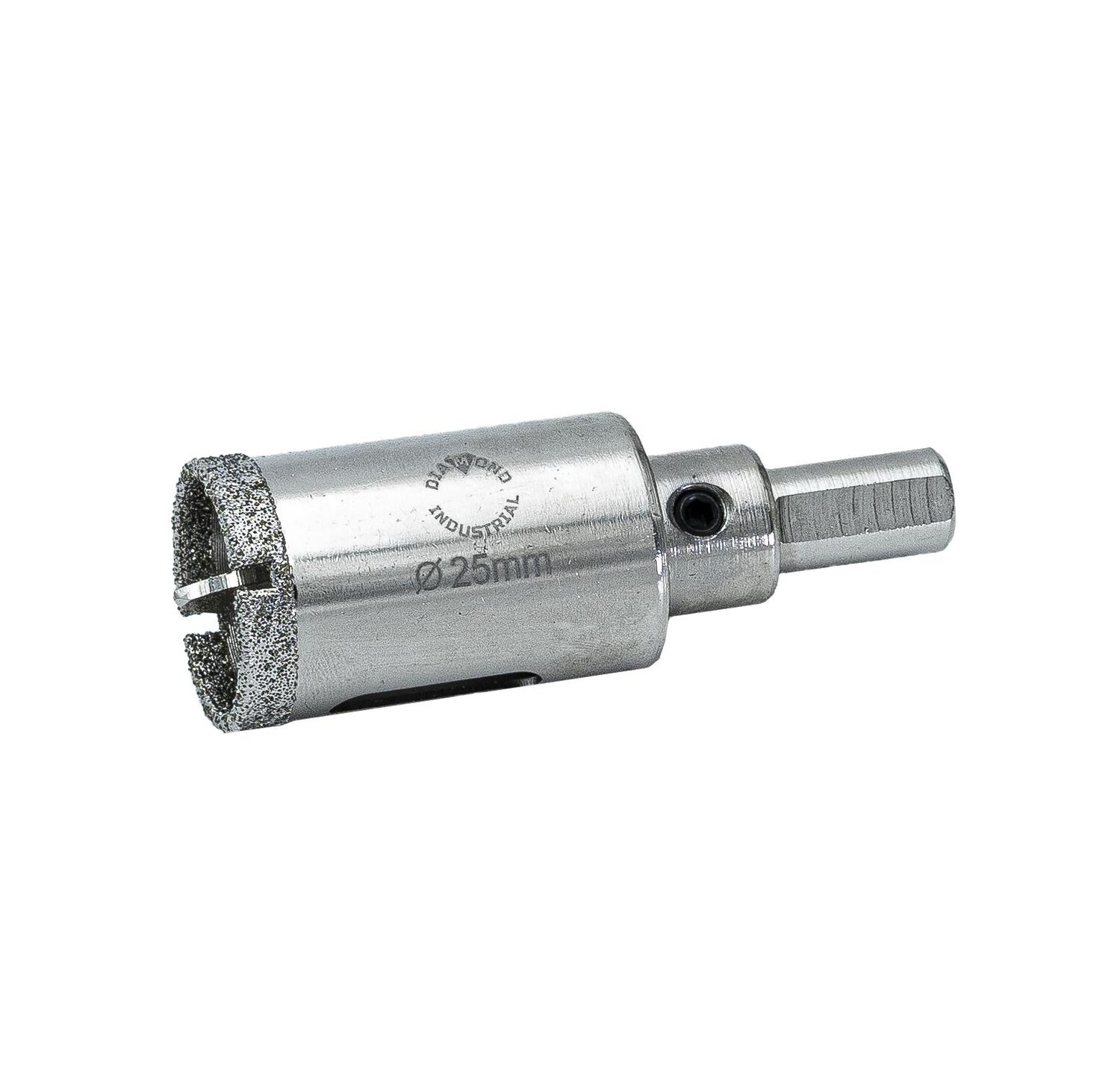 Алмазная коронка Diamond Industrial 25 мм с центровочным сверлом. Используется при сверлении керамогранита, плитки, кафеля. Позволяет вырезать отверстия правильной круглой формы без сколов и трещин. Изготовлена из высококачественной конструкционной стали. Покрытие коронки выполнено гальваническим способом в два слоя, что обеспечивает эффективное сверление и продолжительный рабочий ресурс инструмента. Специальное отверстие в боковой стенке коронки отводит строительную пыль и охлаждает оснастку. Снятие с коронки центрового сверла осуществляется при помощи шестигранного ключа (поставляется в комплекте). Трехгранный хвостовик обеспечивает плавный ход и высокий уровень вращения. При сверлении отверстий с использованием алмазной коронки все работы производятся только с охлаждением: путем подачи в рабочую зону воды. Diamond Industrial предлагает вам коронки по керамограниту, плитке и кафелю различных диаметров: 16 — 120 мм с центровочным сверлом и 6 — 14 мм без.