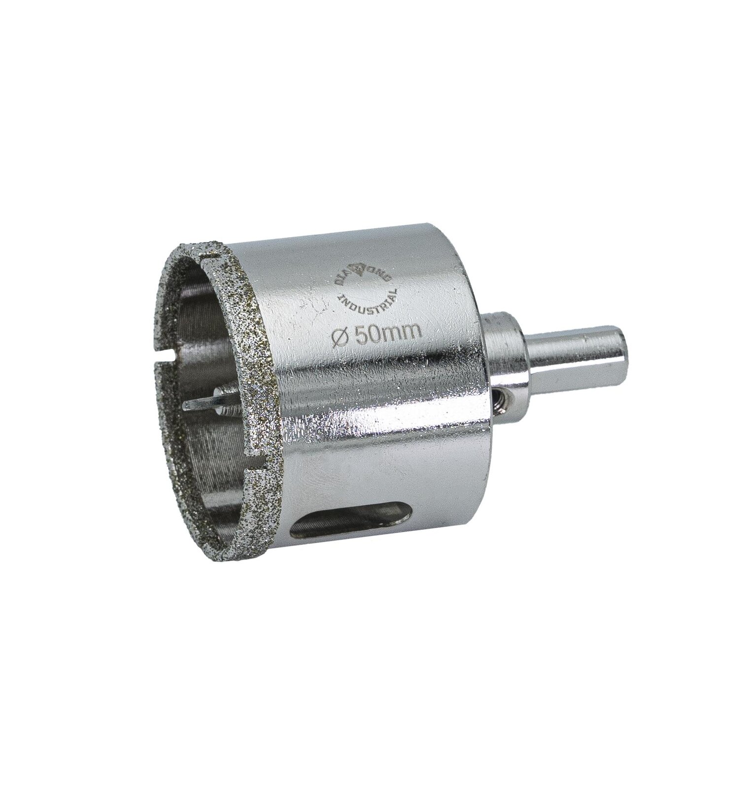 Алмазная коронка Diamond Industrial 50 мм с центровочным сверлом. Используется при сверлении керамогранита, плитки, кафеля. Позволяет вырезать отверстия правильной круглой формы без сколов и трещин. Изготовлена из высококачественной конструкционной стали. Покрытие коронки выполнено гальваническим способом в два слоя, что обеспечивает эффективное сверление и продолжительный рабочий ресурс инструмента. Специальное отверстие в боковой стенке коронки отводит строительную пыль и охлаждает оснастку. Снятие с коронки центрового сверла осуществляется при помощи шестигранного ключа (поставляется в комплекте). Трехгранный хвостовик обеспечивает плавный ход и высокий уровень вращения. При сверлении отверстий с использованием алмазной коронки все работы производятся только с охлаждением: путем подачи в рабочую зону воды. Diamond Industrial предлагает вам коронки по керамограниту, плитке и кафелю различных диаметров: 16 — 120 мм с центровочным сверлом и 6 — 14 мм без.