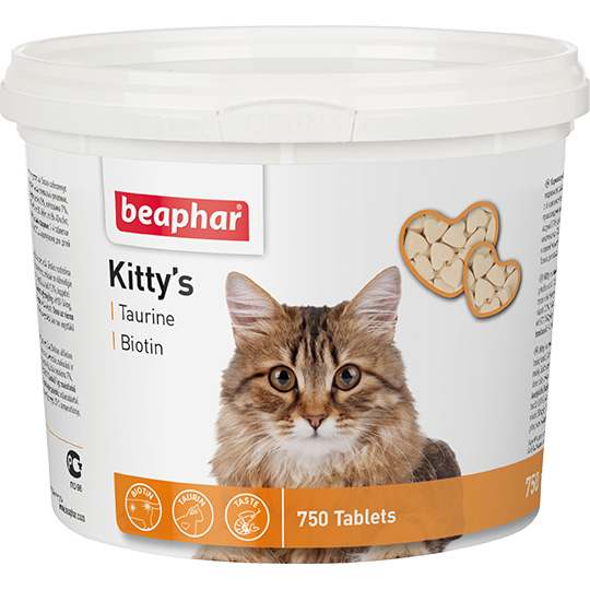 Витаминно-минеральная добавка для кошек Beaphar Kitty`s Taurine+Biotin с таурином и биотином "сердечки" таблетки 750 таб. Kitty's