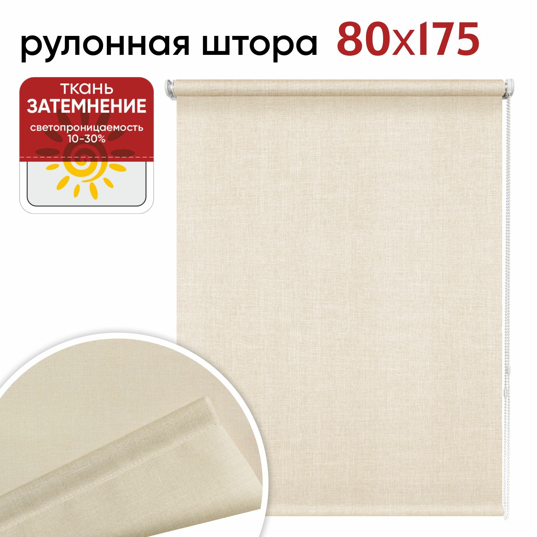 Рулонная штора универсальна — она подойдёт для кабинета, комнаты, кухни. Управляя полотном с помощью цепочки, вы сможете легко и точно регулировать уровень освещённости в помещении. А знойным летом этот аксессуар ещё и защитит от жары. Ткань из полиэстера долговечна и проста в уходе: её можно протирать влажной губкой. Изделие крепится к окну с помощью пластмассового карниза со встроенным цепочным механизмом, который идёт в комплекте.