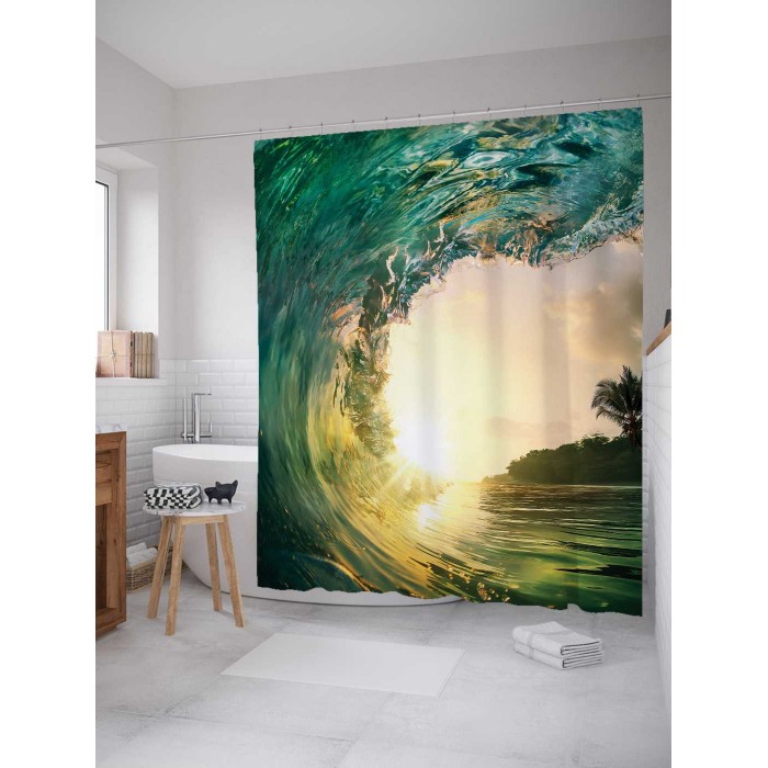 Шторка-занавеска для ванной JOYARTY Штора для ванной Волна накрывает 180х200 см