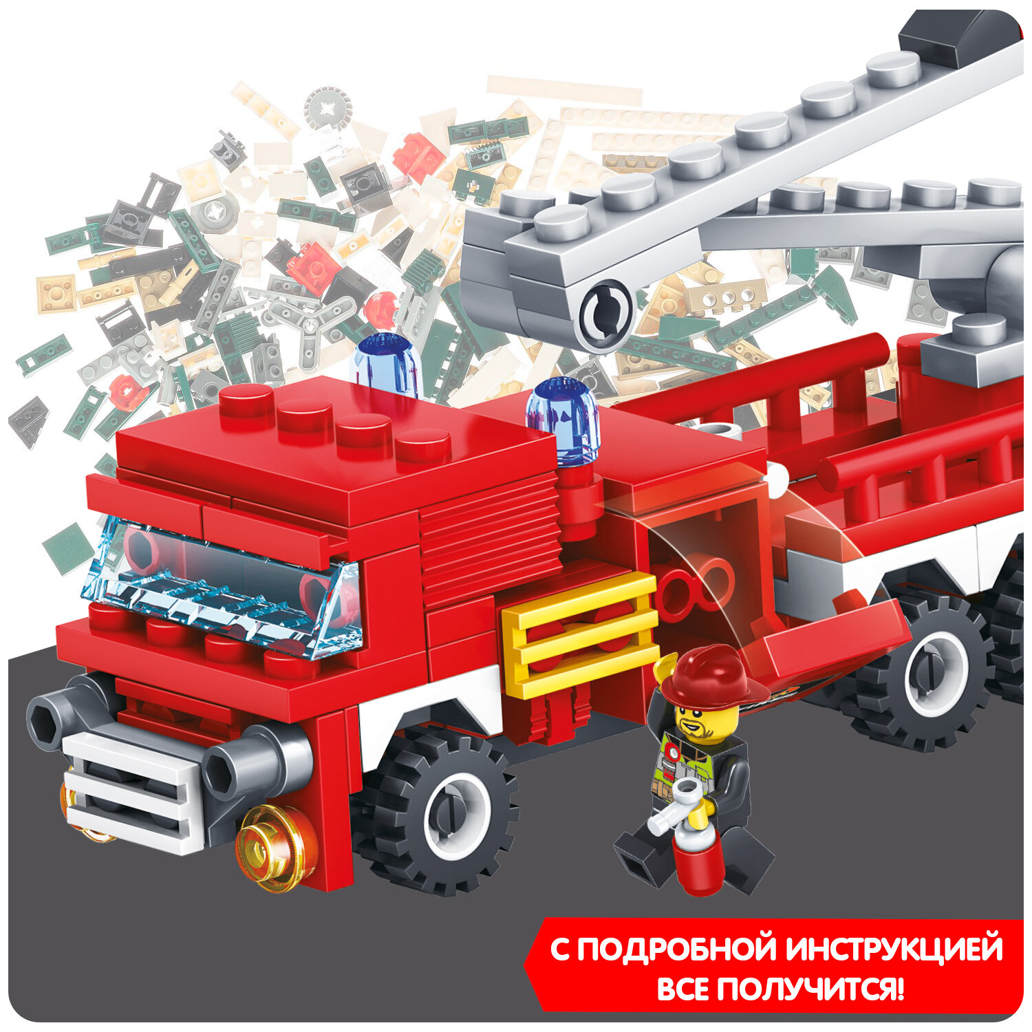 Конструктор Пожарная Служба, Пожарная машина, 103 детали Bondibon