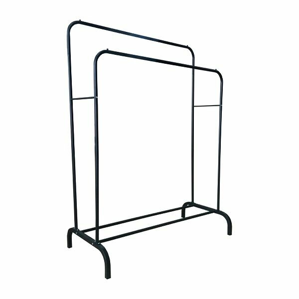 Двойная напольная вешалка подойдет как для хранения одежды, так и для удобного хранения сумок, рюкзаков и других аксессуаров.Штанга вешалки вмещает большое количество одежды, а удобные стопперы не позволят вешалкам падать на пол, тем самым сохраняя одежду чистой.