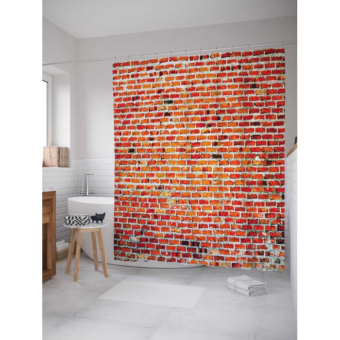 - Модель: Штора для ванной Кирпичная стенка 180х200 см