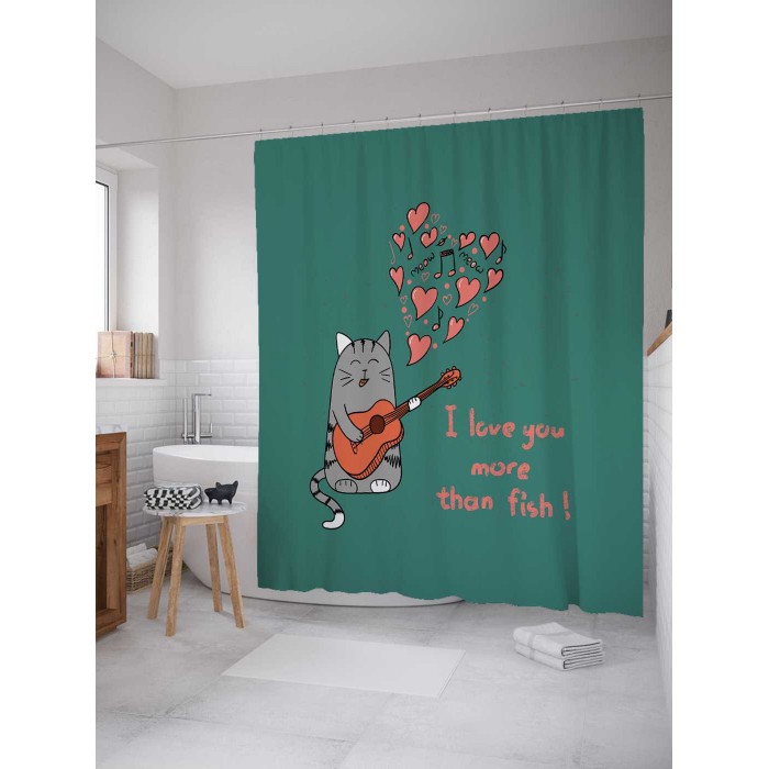 - Модель: Штора для ванной Влюбленный кот-гитарист 180х200 см