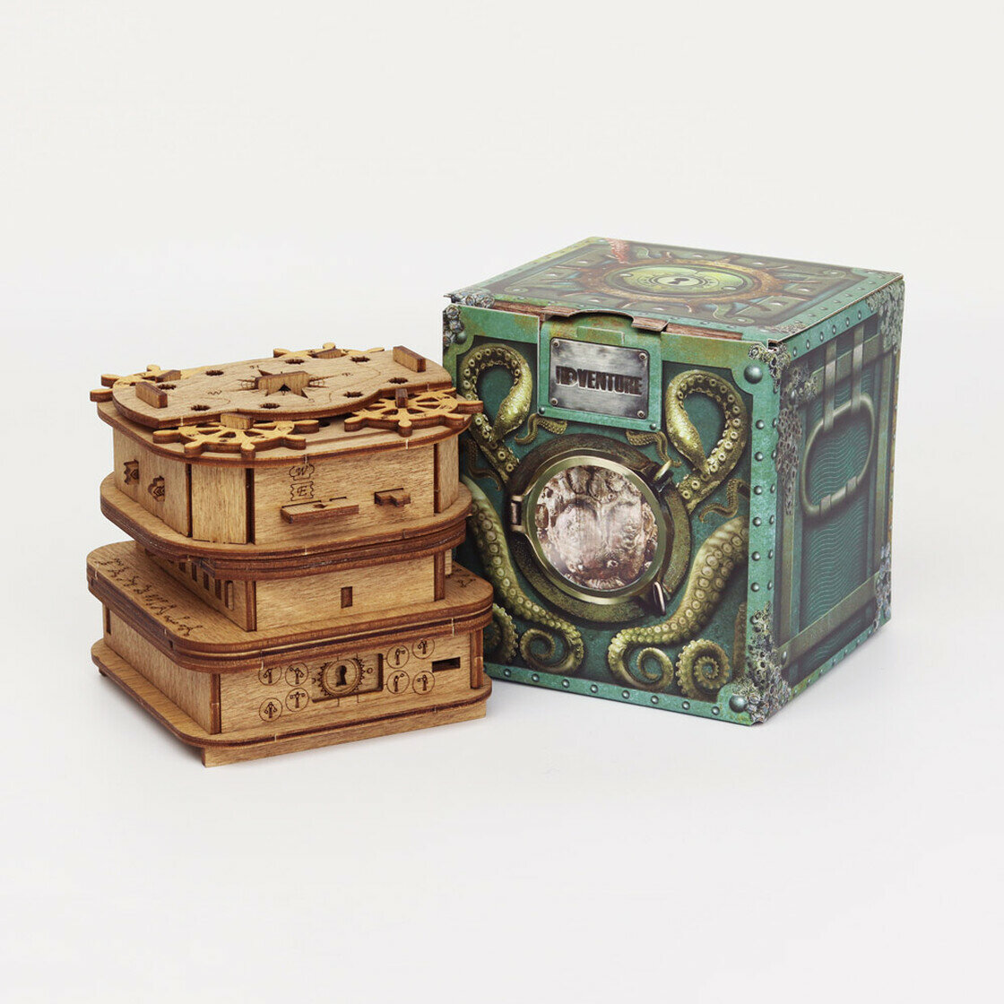 Сразу к делу - в чем суть этой диковинной головоломки? Вся коробка усыпана рычажками, отверстиями, шестеренками и значками. И только самые смелые и внимательные смогут раскрыть тайну этого бокса! Отлично подходит, как подарочная упаковка для небольшого подарка. Порадуйте своего любимого человека не только сюрпризом, но и пищей для ума! Свидетели и очевидцы говорят, что на решение этой головоломки уходит несколько часов и подружек/друзей. То есть вам придется пошевелить шестеренками — во всех смыслах. Качественная сборка, хорошее дерево, привлекательный дизайн.