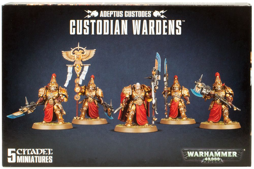 Даже среди величайших воинов человечества есть своя элита - Custodian Warden. Для того чтобы стать одним из Варденов, Кустодианский страж должен не менее пятисот лет охранять покой Золотого Трона Императора. Они славятся как бесконечно терпеливые и неусыпно внимательные стражи. Принимая одежды Хранителя Custodian Warden клянется клятвой верности, которая написана им самим после года медитации. Нарушение этой клятвы – страшнее смерти, и нет силы, способной заставить Кустодианца сделать это. Кровь Императора струится в их венах, а его эгида защищает их. Величайшая угроза существованию Империума и приказ регента Жиллимана заставили Custodian Warden оставить свою бессменную стражу и вступить в войну эры Темного Империума. Каждый Custodian Warden выступает в бою как могучая крепость, о которую разбиваются атаки врагов. Облаченные в доспехи из аурамита и роскошные плащи прошитые адамантиевыми нитями они практически неуязвимы, а непреклонное следование данным клятвам позволяет им не страшиться любых ран. Среди своих братьев Кустодианцев, Хранители составляют костяк любой атаки, в бою они чувствуют рядом своих уважаемых братьев и это придает им дополнительные силы. Вооруженные Копьями Стражей (Guardian Spears) или Топорами Кастеллянов (Castellan Axes) отряд Кустодианцев Варденов стоит несокрушимой стеной, которой не страшны никакие атаки.