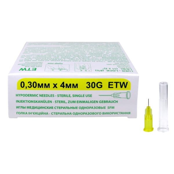 Игла стерильная 0,3 х 4 мм 30G SFM Игла для мезотерапии и микроинъекций имеют тройную заточку и силиконовое покрытие для безболезненного проникновения в ткани. Иглы стерилизованы оксидом этилена и поставляются в герметичных упаковках, которые легко открываются. Одноразовые иглы изготавливаются из хромо-никелевой стали, а колпачок сделан из медицинского полипропилена. острие иглы имеет трехгранную заточку; каждая грань трижды шлифуется ультразвуком; игла трижды покрывается силиконом. Благодаря такой технологии, игла входит в ткань не разрезая, а раздвигая волокна. Силиконовое покрытие делает ее продвижение плавным и безболезненным канюля иглы подходит для всех шприцов с типом крепления луер или луер лок; цвет канюли соответствует размеру иглы по международным стандартам; иглы расфасованы по упаковкам 50 штук и транспортным коробкам 1000 шт. Производство SFM Hospital Products GmbH, Германия