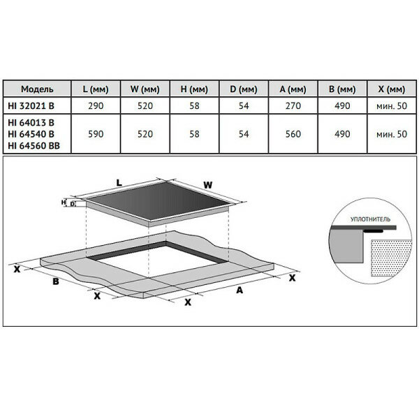| Размеры для встраивания (ШхГ) | 27х49 см |
