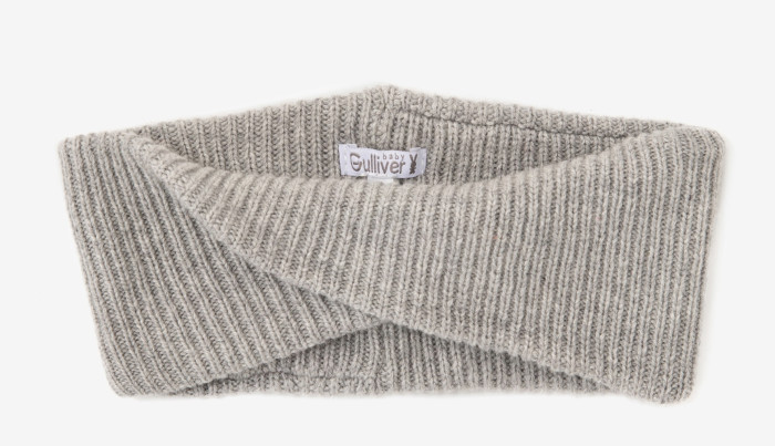Мягкий вязаный снуд с перекрутом выполнен из серой меланжевой пряжи с добавлением шерсти. Снуд красиво завершит осенний образ мальчика, создав тепло, уют и комфорт.