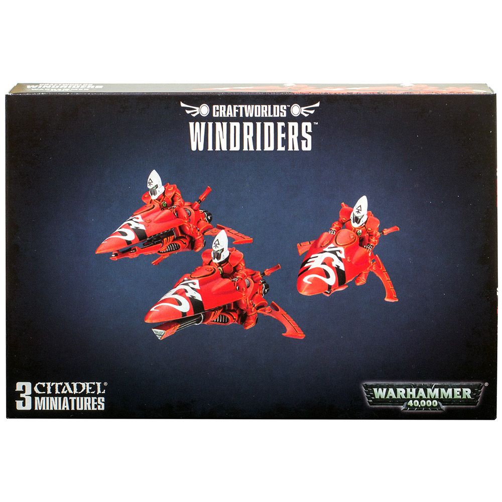 Как правило, первым признаком появления Eldar WIndriders являются предсмертные крики товарищей и едва слышный в резких порывах ветра гул двигателей джетбайков. Когда выжившие успевают опомниться, противник уже исчез из поля видимости, оставив после себя лишь порубленные огнем шурикен-катапульт трупы. Eldar WIndriders – живое воплощение боевой доктрины эльдар, и этих отважных воинов можно увидеть в составе практически любого боевого соединения. Эльдарский джетбайк, являющийся основным элементом оснащения воинов Eldar WIndriders, сам по себе является произведением инженерного искусства – машина способна разгоняться до таких скоростей, на которых лишь скорость реакции и навыки пилотов Eldar WIndriders способны спасти их от неминуемого крушения. Для противника, однако, это означает куда большие неприятности – скорости Eldar WIndriders хватает для того. чтобы буквально просвистеть сквозь вражеские ряды и выйти из зоны поражения орудий раньше, чем кто-либо из врагов успеет заметить их приближение. Установленные на джетбайках Eldar WIndriders спаренные шурикен-катапульты наделяют эскадрон из пяти машин огневой мощью целого отделения стражей, а более дорогие и тяжелые варианты джетбайков, оснащенные полилазерами или шурикен-пушками, позволяют Eldar WIndriders успешно бороться даже с тяжелобронированными врагами. Многие командующие сами являются опытными пилотами джетбайков, и их соединения часто практически целиком состоят из эскадронов Eldar WIndriders. Такие армии воплощают в себе все лучшее, что могут противопоставить врагу эльдары, и немногие способны надеяться победить в битве с ними.