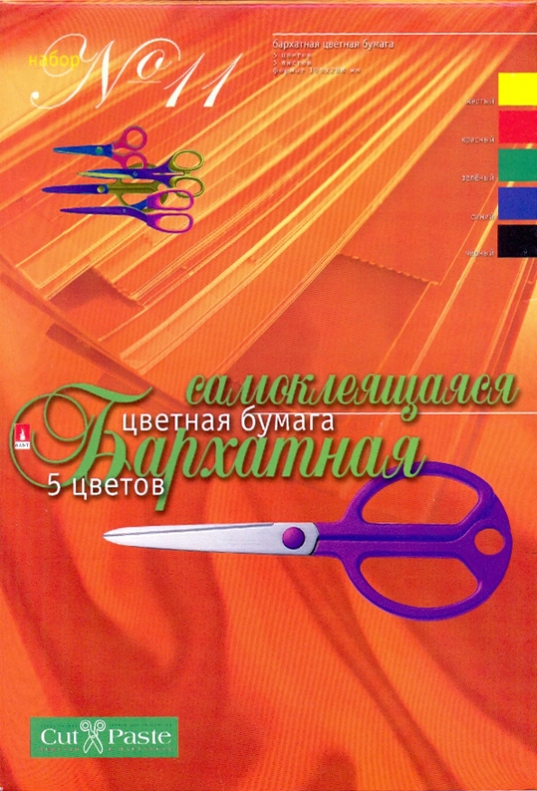 Бумага цветная бархатная самоклеящаяся. 5 цветов, 5 листов (11-405-35) Альт
