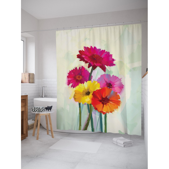 Шторка-занавеска для ванной JOYARTY Штора занавеска для ванной Цветочная картина маслом из сатена 180х200 см с крючками