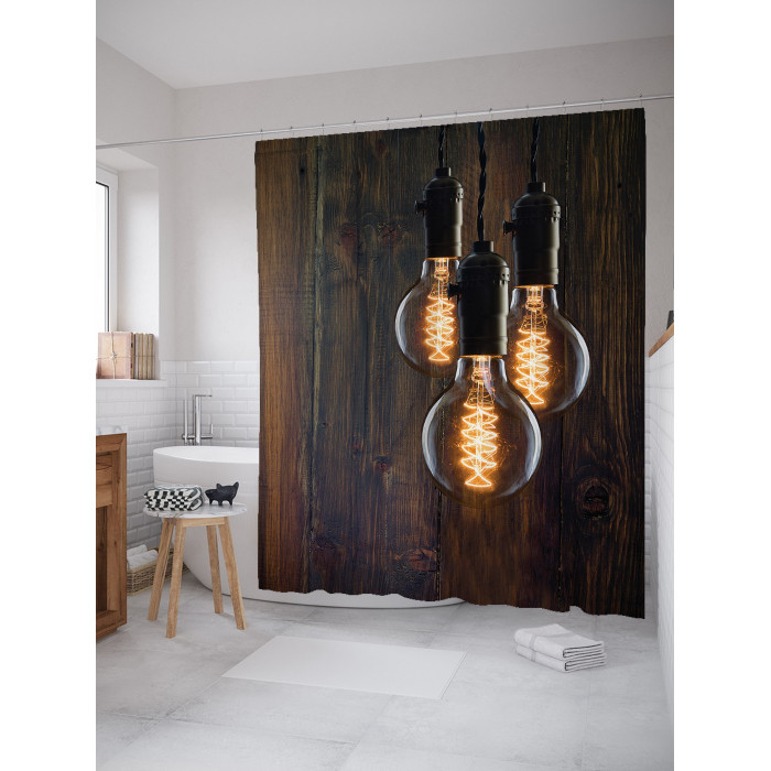 - Модель: Штора занавеска для ванной Винтажный лофт из сатена 180х200 см с крючками