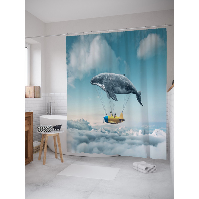 Шторка-занавеска для ванной JOYARTY Штора занавеска для ванной Китовый самолет из сатена 180х200 см с крючками