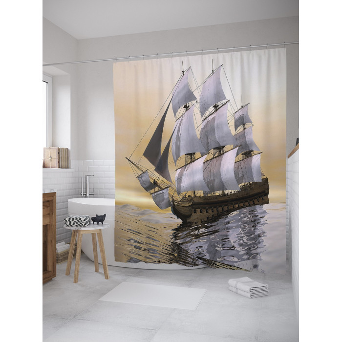 - Модель: Штора занавеска для ванной Борьба с волнами из сатена 180х200 см с крючками