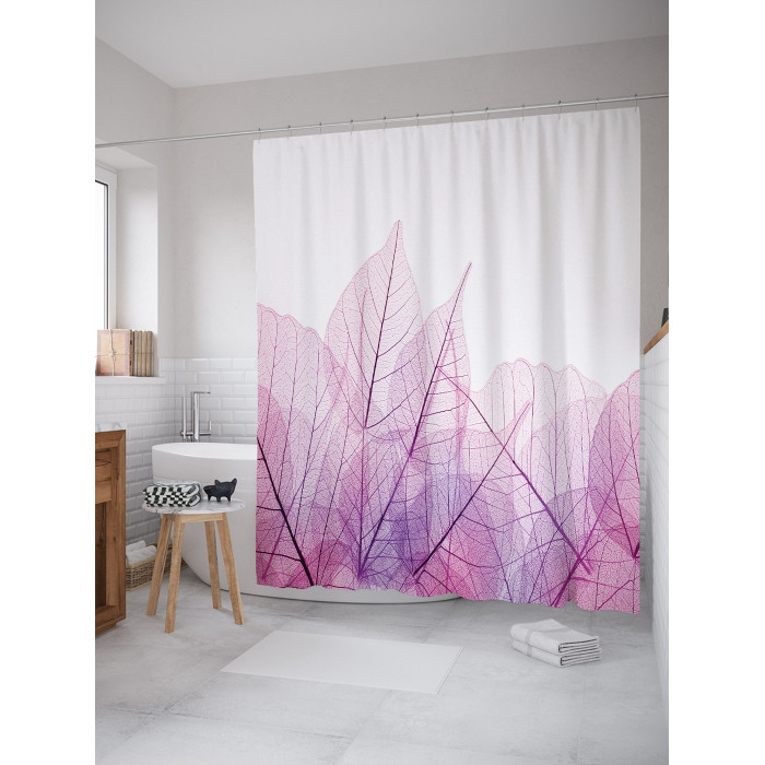 - Модель: Штора занавеска для ванной Лиственный узор из сатена 180х200 см с крючками