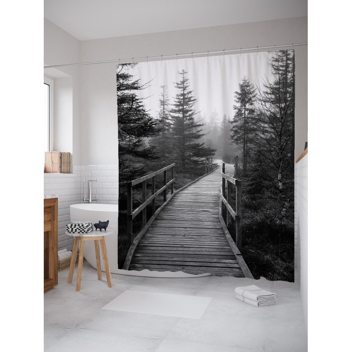 Шторка-занавеска для ванной JOYARTY Штора занавеска для ванной Еловый бор из сатена 180х200 см с крючками