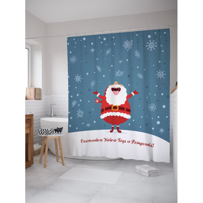 Шторка-занавеска для ванной JOYARTY Штора занавеска для ванной Вкус Нового Года из сатена 180х200 см с крючками