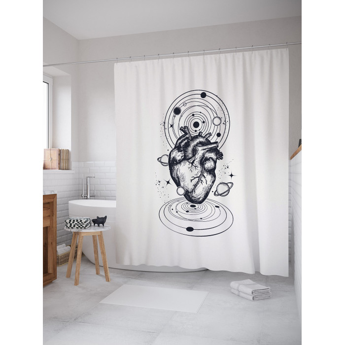 - Модель: Штора занавеска для ванной Космическое сердце из сатена 180х200 см с крючками