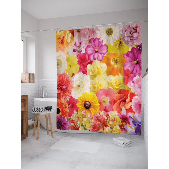 Шторка-занавеска для ванной JOYARTY Штора занавеска для ванной Коллекция цветов из сатена 180х200 см с крючками