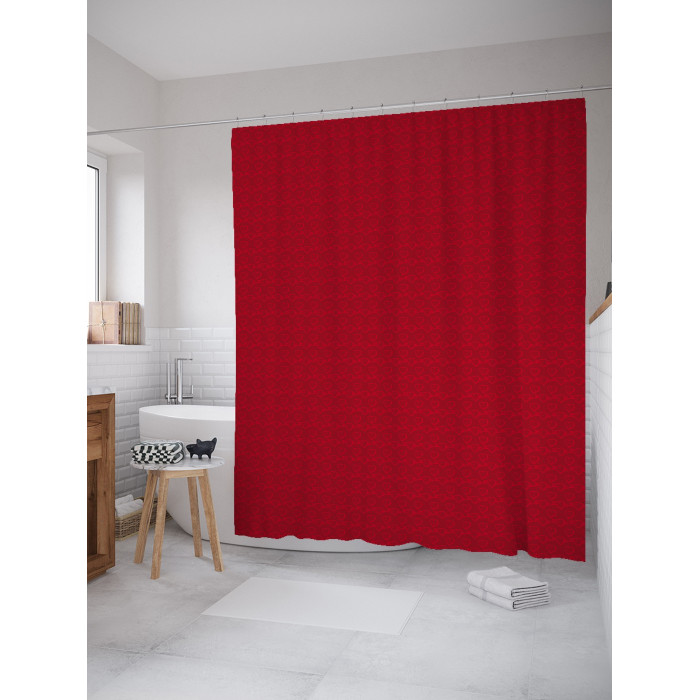 - Модель: Штора занавеска для ванной Клетчатые сердца из сатена 180х200 см с крючками