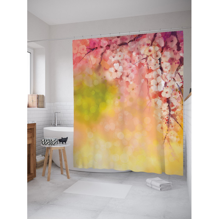 Шторка-занавеска для ванной JOYARTY Штора занавеска для ванной Красочная сакура из сатена 180х200 см с крючками
