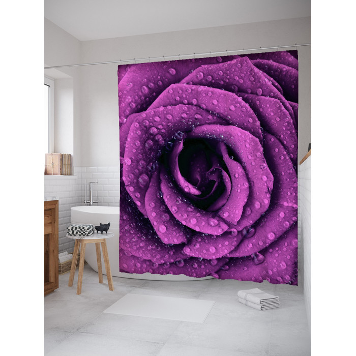 Шторка-занавеска для ванной JOYARTY Штора занавеска для ванной Роза в росе из сатена 180х200 см с крючками
