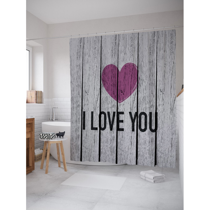 Шторка-занавеска для ванной JOYARTY Штора занавеска для ванной Сердце на деревянном фоне из сатена 180х200 см с крючками