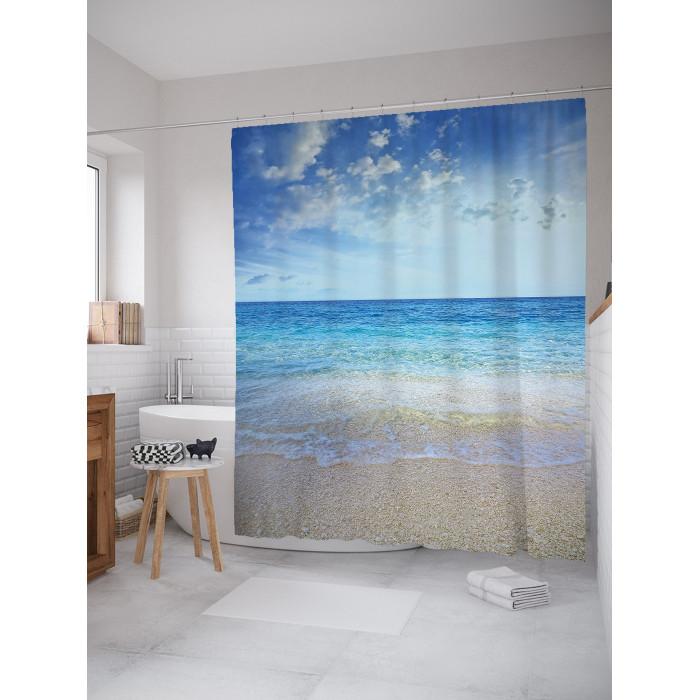 Шторка-занавеска для ванной JOYARTY Штора занавеска для ванной Морской релакс из сатена 180х200 см с крючками