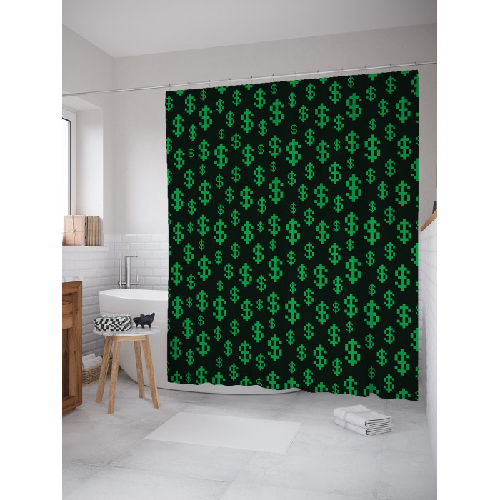Штора для ванной JoyArty "Знак доллара" из сатена, 180х200 см с крючками Штора занавеска для ванной Знак доллара из сатена 180х200 см с крючками