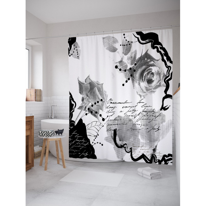 Шторка-занавеска для ванной JOYARTY Штора занавеска для ванной Любовные мемуары из сатена 180х200 см с крючками