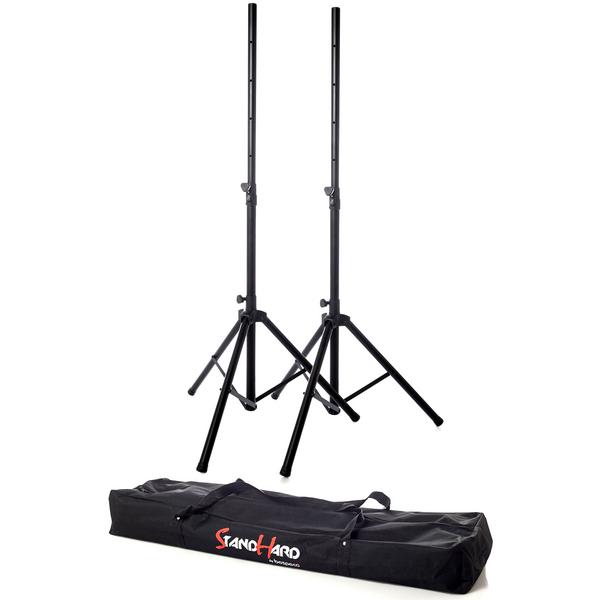Комплект из пары пневматических стоек для акустических систем. Основания в виде треног. Ножки с резиновыми противоскользящими насадками. Изготовлены из стали с использованием прочного нейлона в соединениях. Центральные трубы диаметром 35 мм. Регулировка высоты от 118 до 177 см. Максимальный вес нагрузки 45 кг. В комплекте нейлоновый чехол.