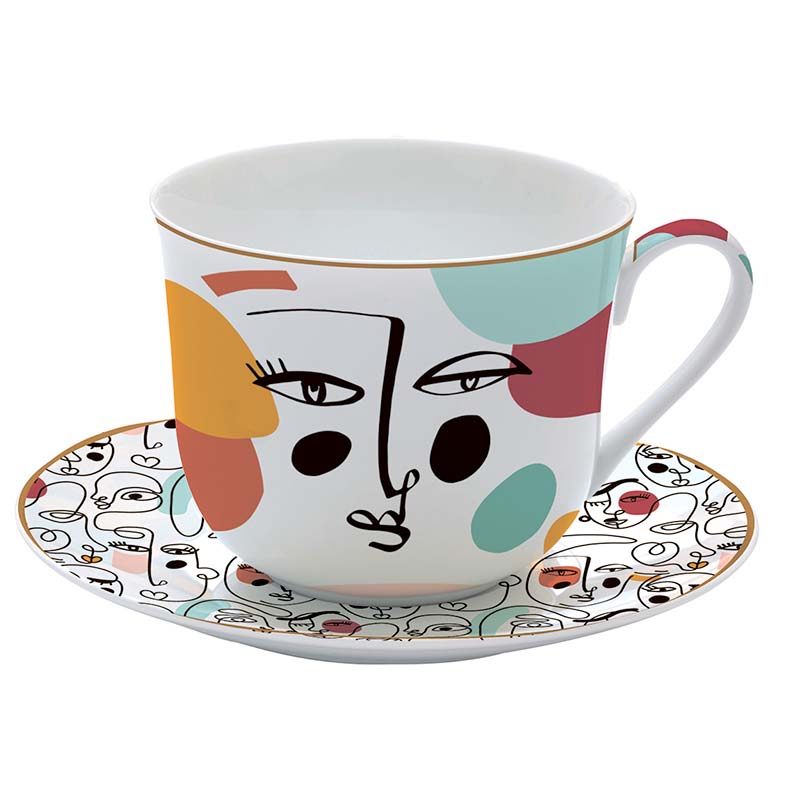 Чайная пара с узором в стиле модерн выполнен из высококачественного пластика. Коллекция станет идеальным дополнением сервировки стола. Все предметы серии идеально сочетаются между собой.