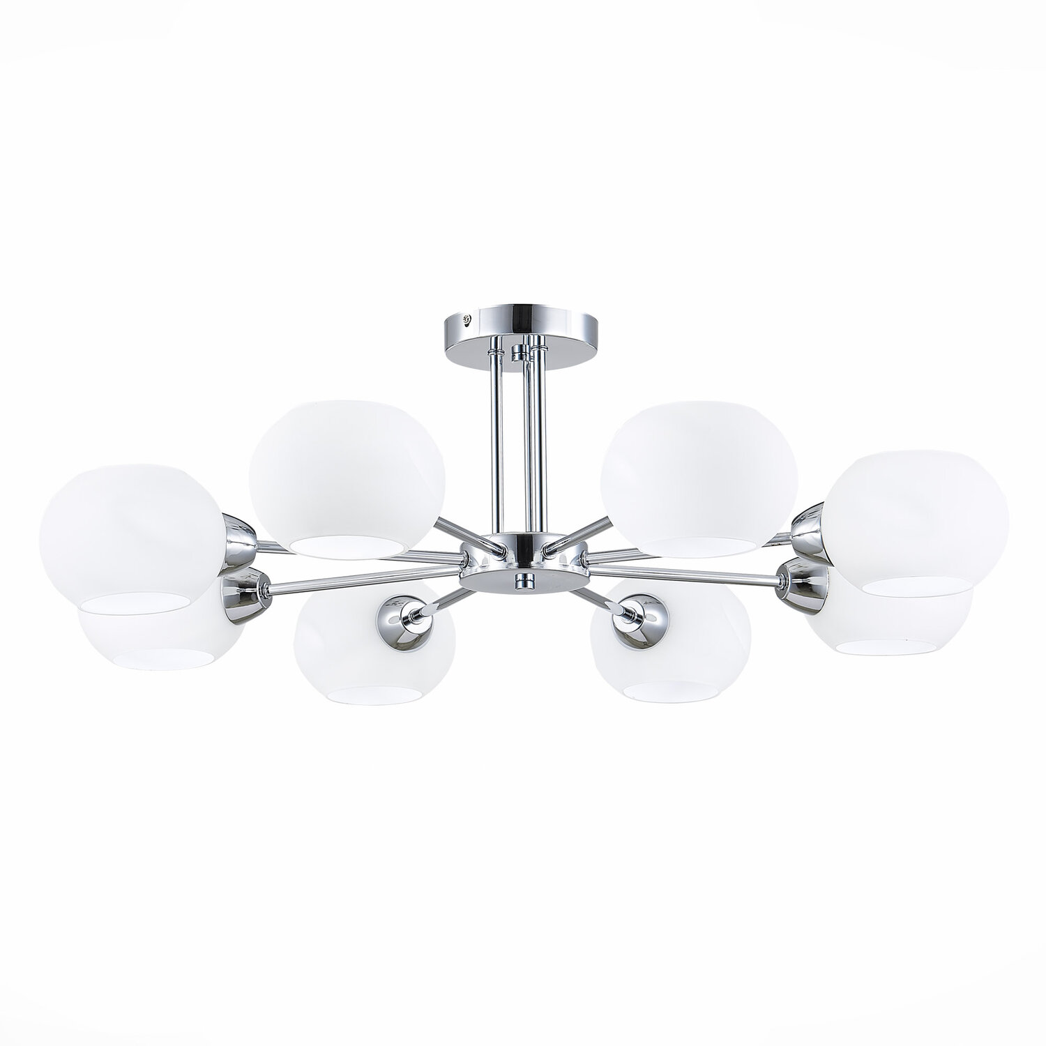 Коллекция LANTA и модель SLE104302-08 производителя Evoluce разработана для интерьера гостиной в современном стиле. Осветительный прибор крепится к планке. Потолочная люстра Evoluce LANTA может осветить 16 кв. м и обладает габаритами 24 см по высоте, 75 см диаметром. Арматура цвета хром выполнена из металла, белый плафон направленный вниз, произведен из стекла.