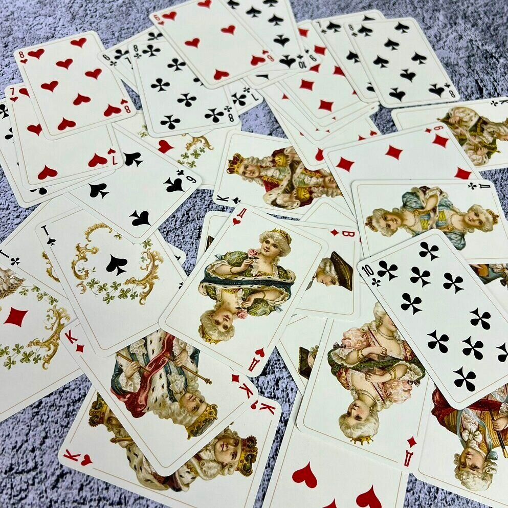 Эта колода с лицами королей и королев из XVIII века — Золотого века Европы и России — впервые увидела свет в 1890 году в Петербурге. Меха, напудренные парики, завитушки рококо сделают игру более приятной, создадут настроение для отдыха и унесут в мир прошлого, подарив ощущение роскоши и неги времен Екатерины Великой.