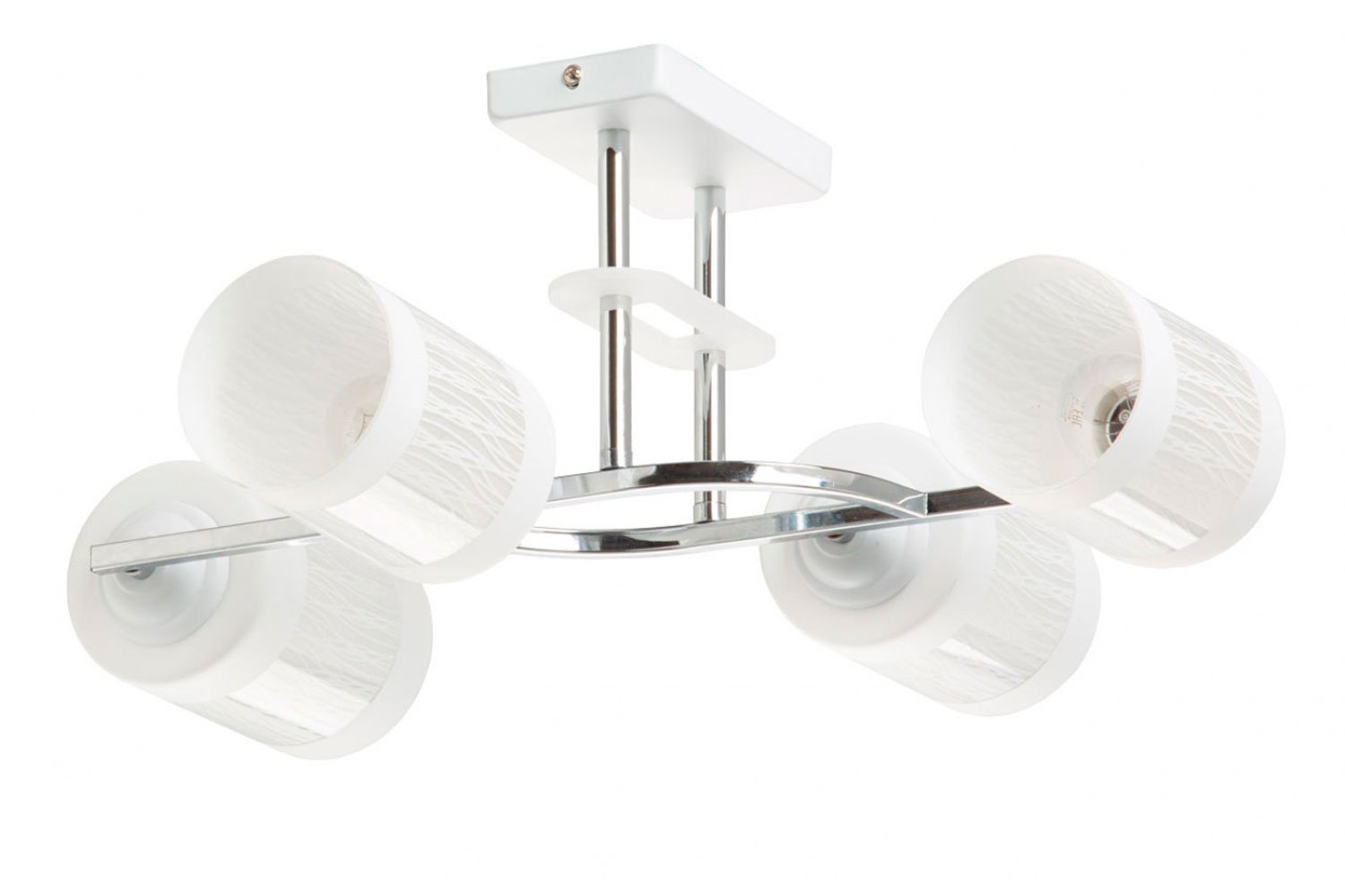 Металлическое основание светильника гальванизировано в цвет хрома. Отдельные элементы основания окрашены в белый цвет. Стеклянные плафоны окрашены вручную в белый цвет в виде сетки.