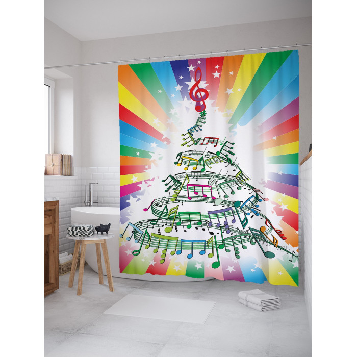 - Модель: Штора занавеска для ванной Скрипичный ключ на нотной ёлке из сатена 180х200 см