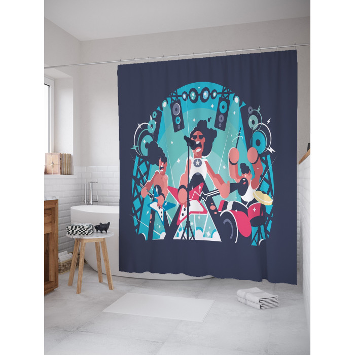 - Модель: Штора занавеска для ванной Рок-группа из сатена 180х200 см с крючками