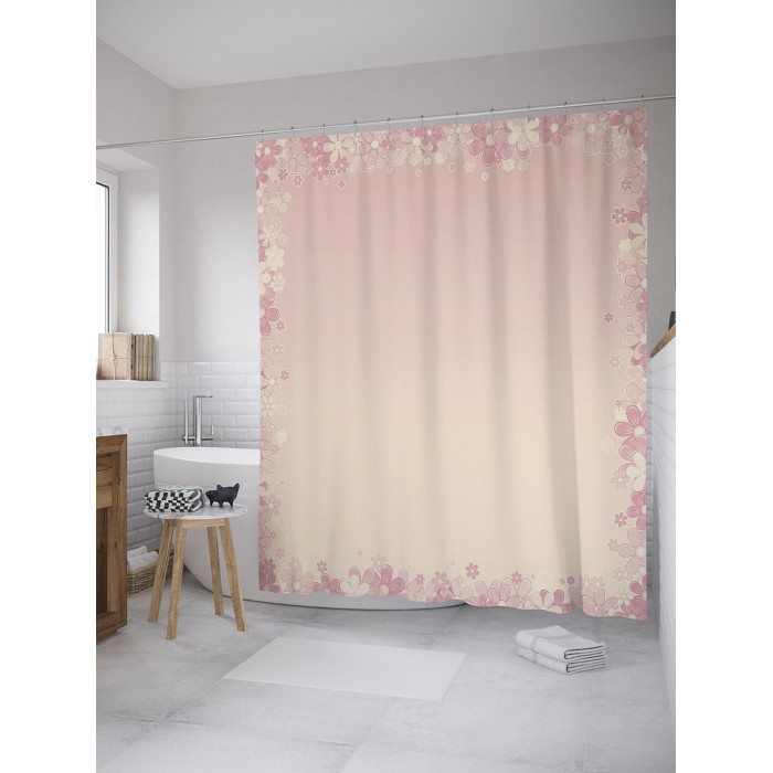 Штора-занавеска для ванной JOYARTY Штора занавеска для ванной Обрамление цветами из сатена 180х200 см с крючками