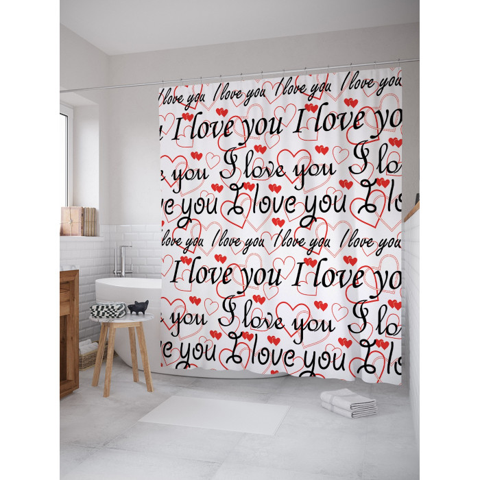 Шторка-занавеска для ванной JOYARTY Штора занавеска для ванной Я тебя люблю из сатена 180х200 см с крючками