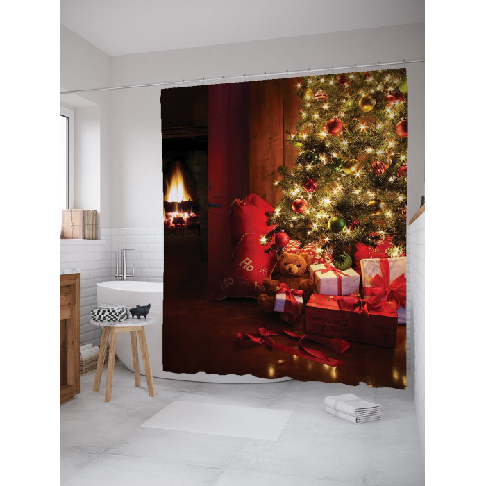 Шторка-занавеска для ванной JOYARTY Штора занавеска для ванной Праздничный уют из сатена 180х200 см с крючками