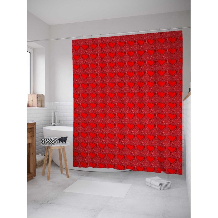 - Модель: Штора для ванной Мозайка из сердец 180х200 см