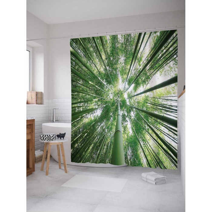 Шторка-занавеска для ванной JOYARTY Штора занавеска из сатена с крючками Бамбуковый лес 200х180 см (размер: 180х200)