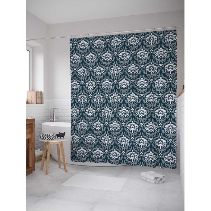 Красиво декорированная шторка, защищающая пол и оборудование ванной комнаты от брызг воды, изготовлена из полиэстера и обладает выраженными водоотталкивающими свойствами. Занавеска для ванной 180х200 комплектуется 12 прочными крючками из пластика и имеет в верхней части столько же обработанных на оверлоке отверстий. Декоративный рисунок нанесен на поверхность ткани при помощи фотопечати. Такие принты не боятся влаги и не смываются даже очень горячей водой.